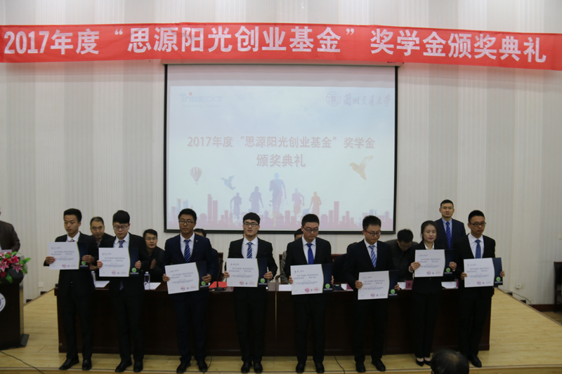 副校長馬軍黨為頒獎典禮致辭,他代表學(xué)校向所有的獲獎學(xué)生表示祝賀,感謝天合光能有限公司、“思源陽光創(chuàng)業(yè)基金”對蘭州交通大學(xué)長期以來的關(guān)心與支持。他指出蘭州交通大學(xué)始終堅(jiān)持把人才培養(yǎng)作為學(xué)校的根本任務(wù),將人才培養(yǎng)質(zhì)量視作學(xué)校最為寶貴的生命線。今天獲獎的同學(xué)是學(xué)院品學(xué)兼優(yōu)的代表,他們的成長、成才將對國家和甘肅省新能源產(chǎn)業(yè)發(fā)展起到積極的促進(jìn)作用。希望同學(xué)們秉承“尚德、勵志、博學(xué)、篤行”的校訓(xùn)精神,刻苦學(xué)習(xí),努力奮斗,勇于承擔(dān)起青年責(zé)任,在自我發(fā)展的同時,以社會發(fā)展為己任,在人生的道路上譜寫美麗的篇章。