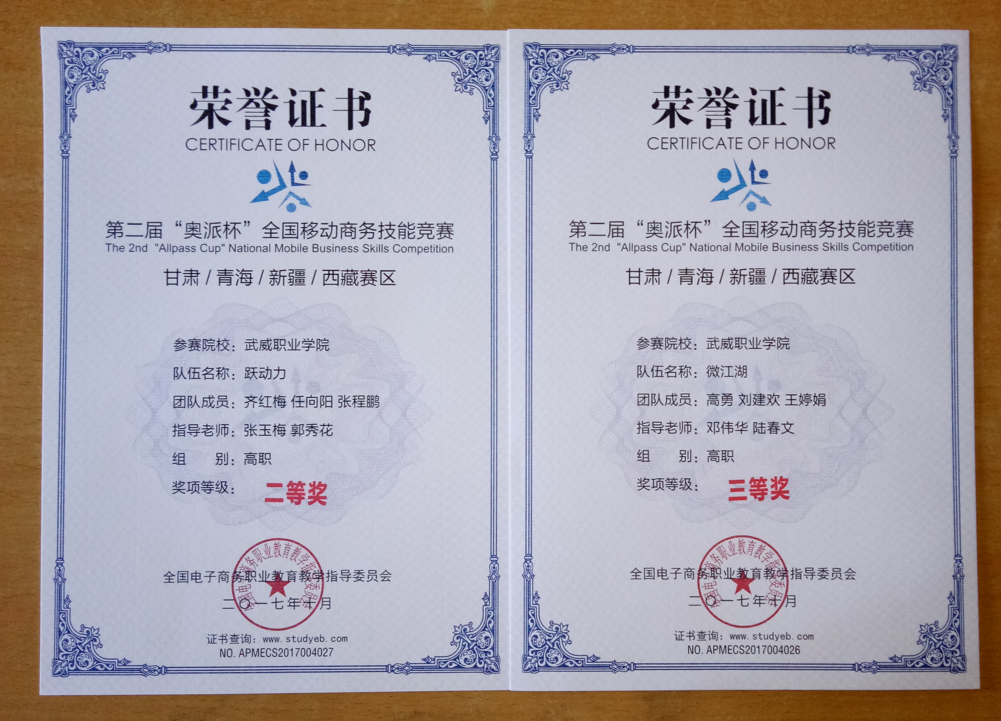 來自甘、青、新、藏24所院校的54支中、高職隊伍參加比賽。此次大賽旨在檢驗和展示職業(yè)院校移動商務專業(yè)教學成果,以賽促建,以賽促教,推進移動商務專業(yè)在職業(yè)院校中的布點建設,引領高等職業(yè)學校電子商務專業(yè)教學改革及移動商務專業(yè)建設的新趨勢。競賽經(jīng)過激烈的角逐,我系與電子信息工程系聯(lián)合由齊紅梅、任向陽、張程鵬組成的“躍動力”隊獲得團體二等獎,由高勇、劉建歡、王婷娟組成的“微江湖”隊獲得省級三等獎,我系教師郭秀花和電子信息工程系張玉梅老師分別獲得優(yōu)秀指導老師獎。