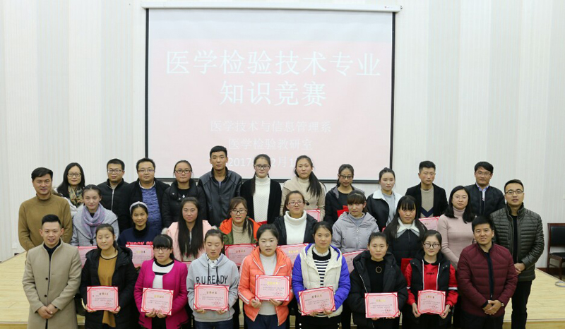 為營(yíng)造良好學(xué)風(fēng),活躍校園文化生活,提高學(xué)生對(duì)專業(yè)知識(shí)、專業(yè)技能的學(xué)習(xí)興趣,推進(jìn)醫(yī)學(xué)檢驗(yàn)技術(shù)專業(yè)的建設(shè)。醫(yī)學(xué)檢驗(yàn)教研室于12月17日晚在尚德樓正德廳舉辦了醫(yī)學(xué)檢驗(yàn)技術(shù)專業(yè)知識(shí)競(jìng)賽,有2016級(jí)、2017級(jí)醫(yī)學(xué)檢驗(yàn)技術(shù)專業(yè)21名同學(xué)參加了此次競(jìng)賽。