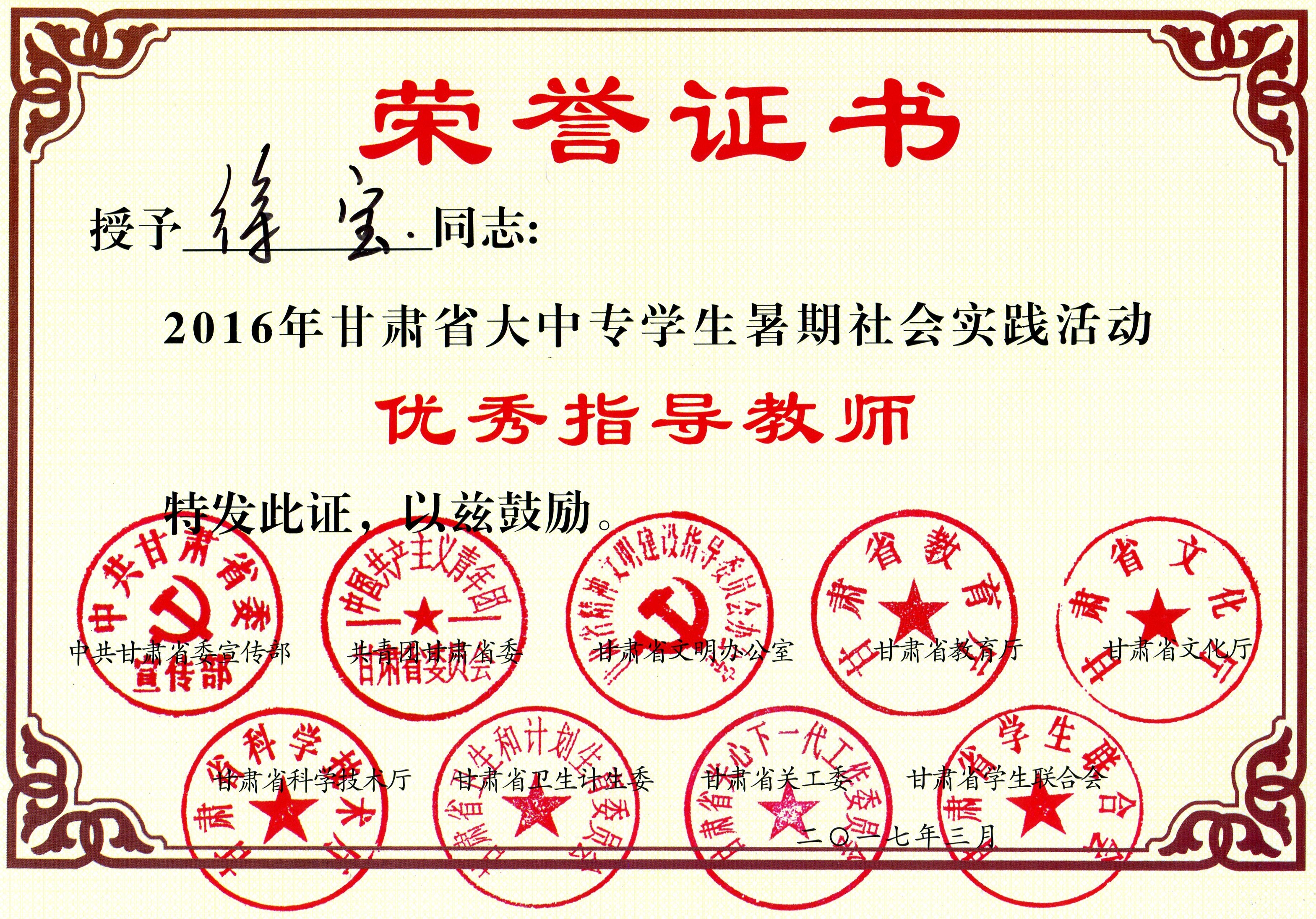 甘肅省大中專學(xué)生暑期社會實踐活動優(yōu)秀指導(dǎo)教師