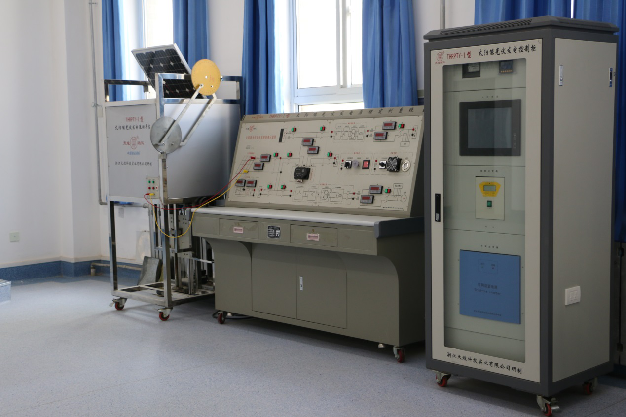 實(shí)訓(xùn)功能:本實(shí)訓(xùn)室擁有金相教學(xué)顯微鏡、X射線晶體定向儀、電池特性測(cè)試儀、太陽光伏材料電阻特性測(cè)量實(shí)驗(yàn)裝置、太陽輻射電流表、總輻射表、經(jīng)濟(jì)性純水器等設(shè)備共31臺(tái)(套)。主要服務(wù)課程為光伏發(fā)電技術(shù)分析與應(yīng)用、光伏控制器拆裝與維修等。