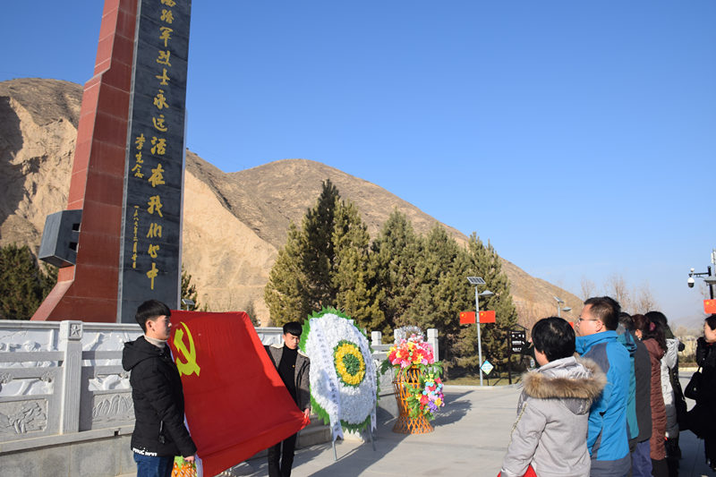 全體人員首先參加了中國工農紅軍西路軍革命烈士陵園憑吊儀式。教師代表向烈士紀念碑敬獻花籃和花圈,全體人員向紀念碑鞠躬致敬,深刻表達了對革命先烈的緬懷之情。全體黨員在晏素珍同志的帶領下莊嚴向黨旗宣誓,重溫入黨誓詞,深刻表達對黨忠誠、積極努力工作的決心和信心。