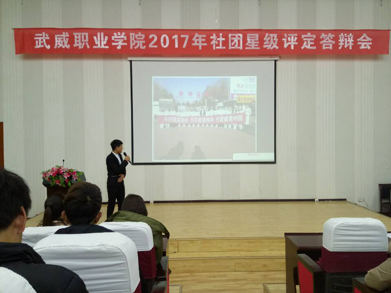 本次星級評定分為初評和終評兩個(gè)階段。初評階段,由社團(tuán)聯(lián)合會主席團(tuán)成員和各社團(tuán)負(fù)責(zé)人根據(jù)《武威職業(yè)學(xué)院學(xué)生社團(tuán)星級社團(tuán)評定辦法》,結(jié)合各學(xué)生社團(tuán)上報(bào)的活動(dòng)資料和實(shí)際工作情況進(jìn)行打分評比,根據(jù)評分高低,前10個(gè)學(xué)生社團(tuán)入圍星級評定答辯會。答辯會現(xiàn)場,各社團(tuán)通過PPT、視頻等形式展示過去一年里開展的活動(dòng)和取得的成績,參會人員積極提問互動(dòng),形成相互學(xué)習(xí)、相互交流的良好氛圍。