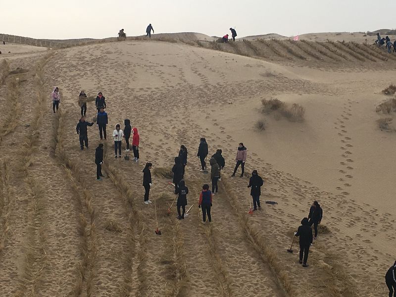 12月15日,為了響應(yīng)市委、團(tuán)委關(guān)于“壓沙造林”的號(hào)召,護(hù)理系組織全體教師及學(xué)生共600余人,來(lái)到長(zhǎng)城鄉(xiāng)附近沙漠地區(qū),開展了義務(wù)壓沙活動(dòng)。