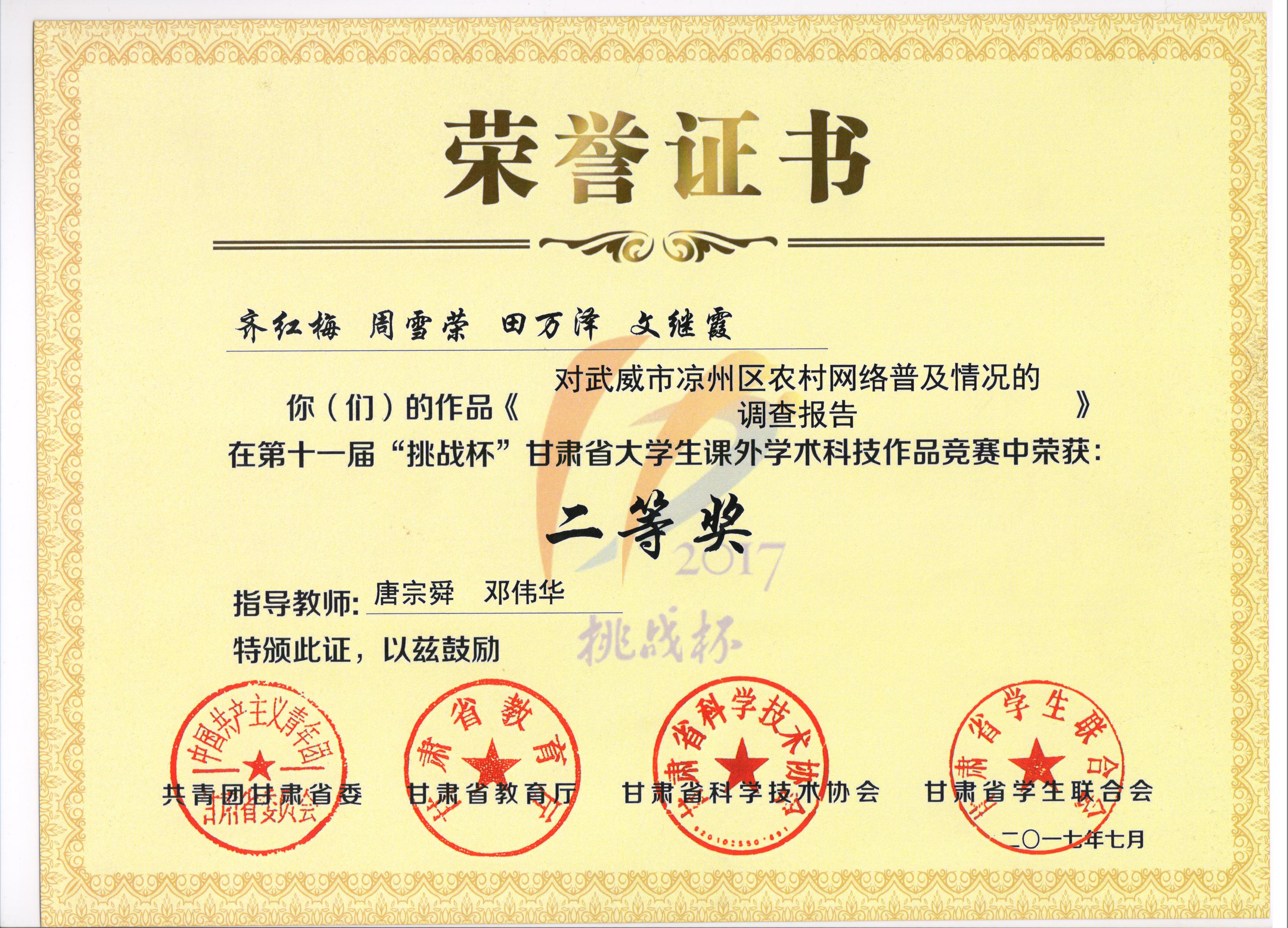 我系學子在甘肅省第十一屆“挑戰(zhàn)杯”課外學術作品競賽喜獲佳績