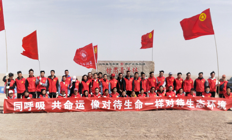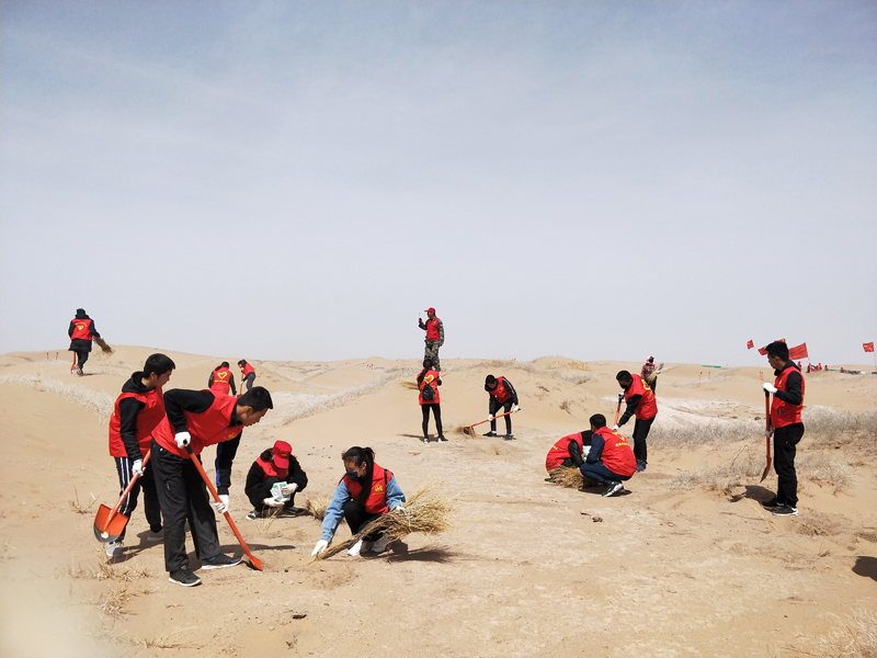 為傳播綠色發(fā)展理念,引導(dǎo)青年學(xué)生牢固樹(shù)立“綠水青山就是金山銀山”的理念,積極投身植樹(shù)造林、美化環(huán)境、治沙壓沙等生態(tài)文明建設(shè)的生動(dòng)實(shí)踐,4月14日,團(tuán)省委在民勤縣昌寧鎮(zhèn)四方墩志愿者生態(tài)林基地舉辦 “構(gòu)筑生態(tài)屏障·助力脫貧攻堅(jiān)”暨2018年“甘肅青年林”春季植樹(shù)活動(dòng)啟動(dòng)儀式。學(xué)院團(tuán)委組織53名志愿者參加活動(dòng)啟動(dòng)儀式和義務(wù)植樹(shù)壓沙活動(dòng)。