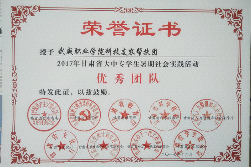 活動(dòng)結(jié)束后,根據(jù)《關(guān)于開(kāi)展2017年甘肅省大中專(zhuān)學(xué)生志愿者暑期文化科技衛(wèi)生“三下鄉(xiāng)”社會(huì)實(shí)踐活動(dòng)的通知》要求,我系組織的科技支農(nóng)幫扶團(tuán)集體和個(gè)人被評(píng)為甘肅省暑期“三下鄉(xiāng)”社會(huì)實(shí)踐活動(dòng)先進(jìn)集體和個(gè)人。