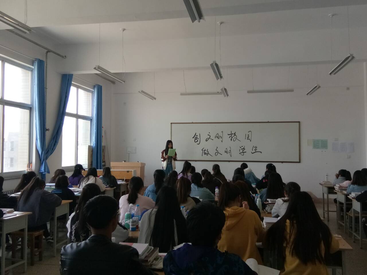 4月20日,人文藝術(shù)教育系組織全體教師學(xué)習(xí)了《中共武威職業(yè)學(xué)院委員會(huì)關(guān)于成立創(chuàng)建全國(guó)文明城市工作領(lǐng)導(dǎo)小組的通知》《武威職業(yè)學(xué)院創(chuàng)建全國(guó)文明城市三年規(guī)劃(2018-2020)》《武威職業(yè)學(xué)院創(chuàng)建全國(guó)文明城市2018年工作實(shí)施方案》文件精神,通過(guò)教研室活動(dòng),認(rèn)真學(xué)習(xí)了《你我攜手 共創(chuàng)文明》倡議書(shū),自覺(jué)遵守教師行為守則和管理規(guī)范,自覺(jué)維護(hù)辦公室環(huán)境,以實(shí)際行動(dòng)踐行文明承諾,以模范行為影響身邊人、身邊事。學(xué)生通過(guò)主題班會(huì),學(xué)習(xí)了《創(chuàng)文明校園 做文明學(xué)生》和《共同創(chuàng)建文明城市》倡議書(shū),自覺(jué)愛(ài)護(hù)公物,不亂貼亂畫(huà),不亂扔垃圾,不講粗話臟話,不隨地吐痰,不破壞公共設(shè)施,用實(shí)際行動(dòng)踐行社會(huì)主義核心價(jià)值觀。