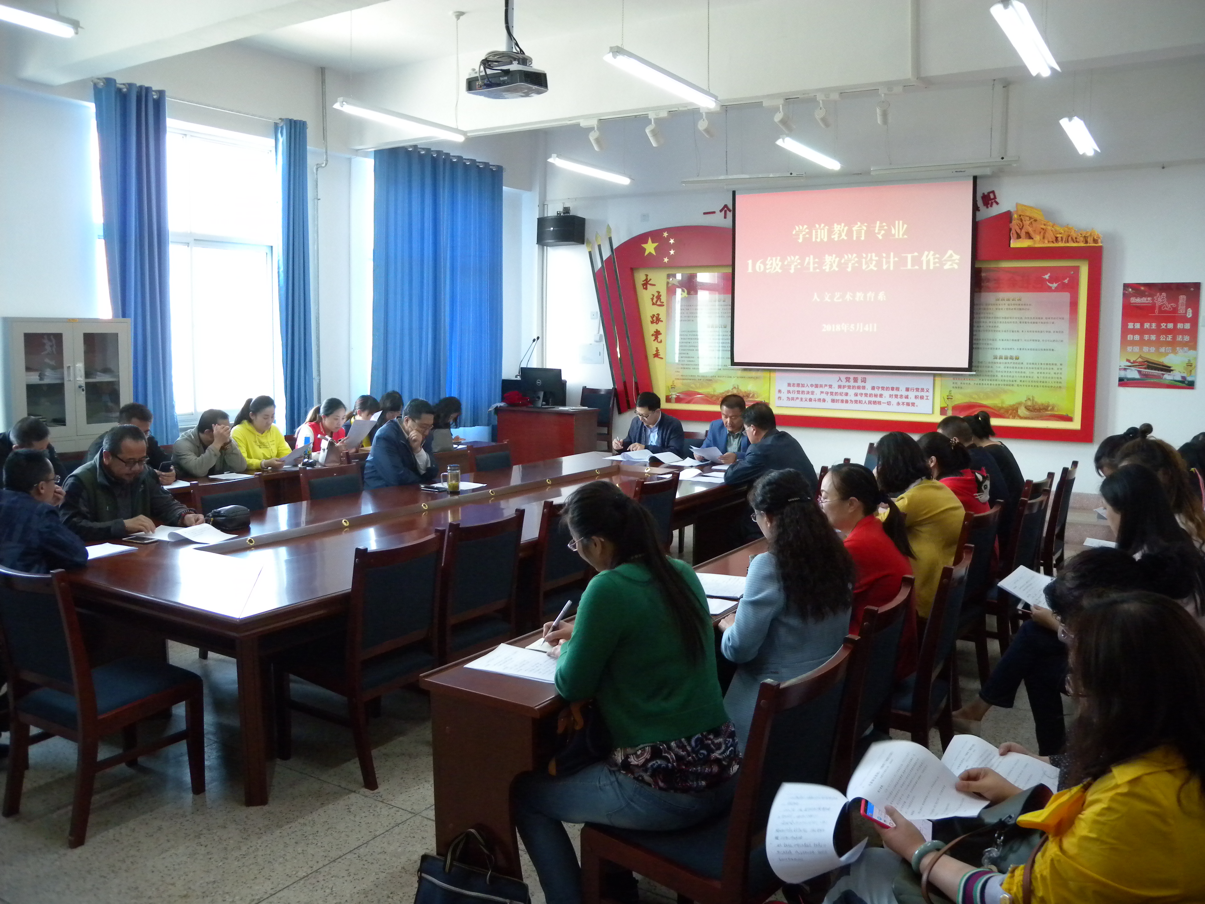 5月4日下午,人文藝術(shù)教育系召開優(yōu)質(zhì)校建設(shè)學(xué)前教育重點專業(yè)2016級學(xué)生教學(xué)設(shè)計工作專題會議。全系中級及以上職稱教師和2016級學(xué)前教育大專班班主任參加了會議。