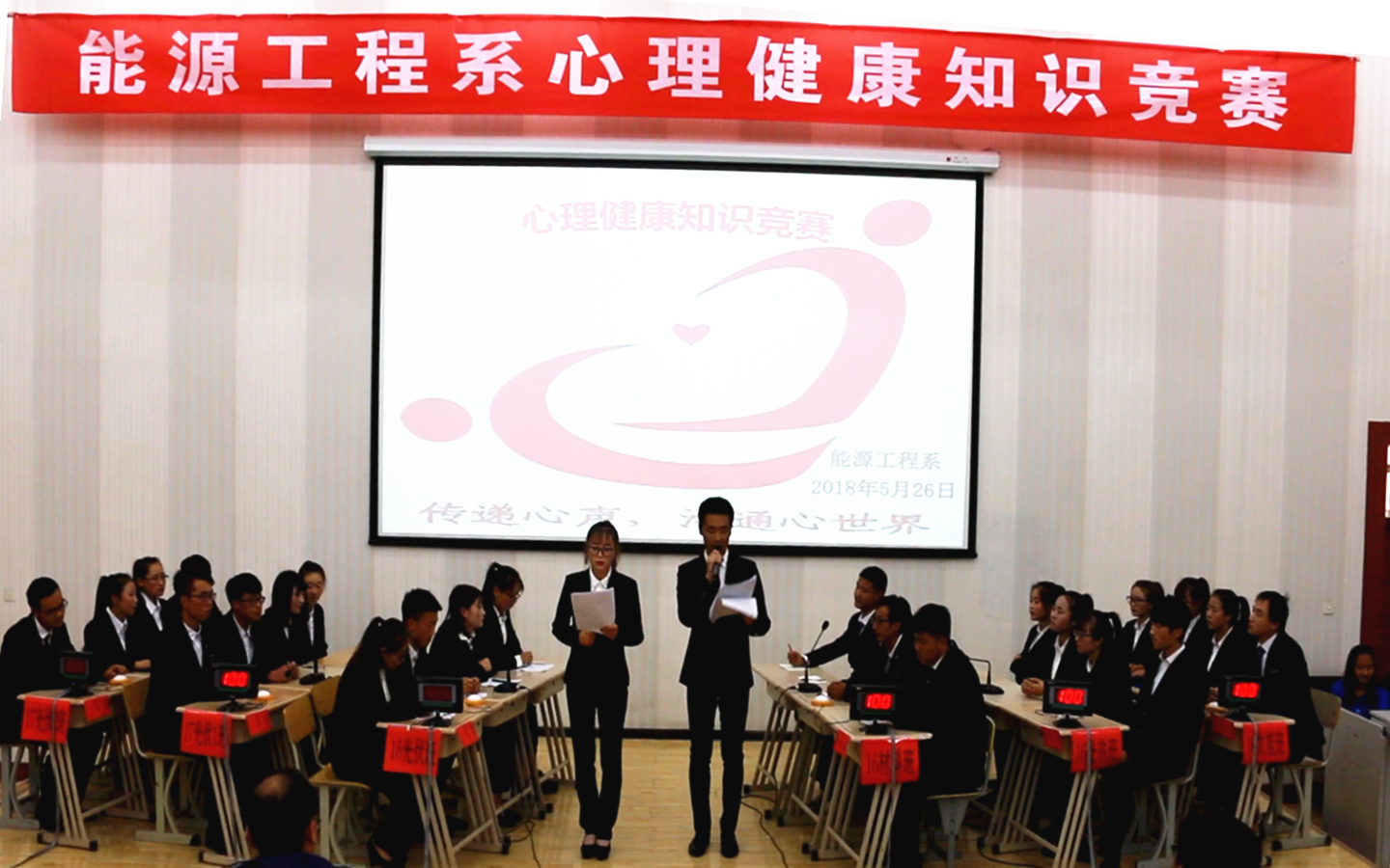 為進一步加強大學(xué)生心理健康知識的宣傳教育,全面提升大學(xué)生心理健康素質(zhì),積極倡導(dǎo)健康向上的生活理念,5月27日晚,能源工程系在正德廳隆重舉行心理健康知識競賽。全系師生參加了此次活動。