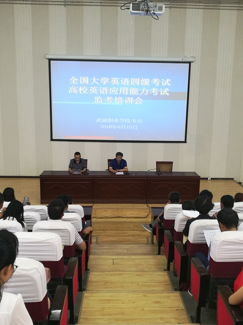 6月15日下午,2018年上半年全國大學(xué)英語四級及全國高校英語應(yīng)用能力考試考務(wù)工作及考前培訓(xùn)會議在尚德樓正德廳組織召開,全體考務(wù)人員和監(jiān)考教師參加了會議,黨委副書記趙明主持會議并講話。
