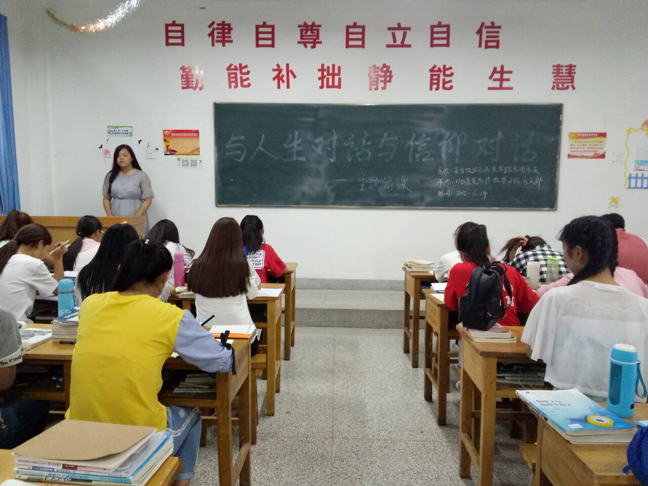為了引導(dǎo)青年學(xué)生提高思想道德修養(yǎng),找準(zhǔn)人生方向和成長(zhǎng)道路,培育和踐行社會(huì)主義核心價(jià)值觀,醫(yī)學(xué)技術(shù)與信息管理系于2018年6月14日在各班教室進(jìn)行了“與人生對(duì)話與信仰對(duì)話”的主題團(tuán)課,旨在提高同學(xué)們的政治素養(yǎng),進(jìn)一步濃郁班級(jí)文化氛圍、激發(fā)同學(xué)們讀書(shū)求知的熱情。