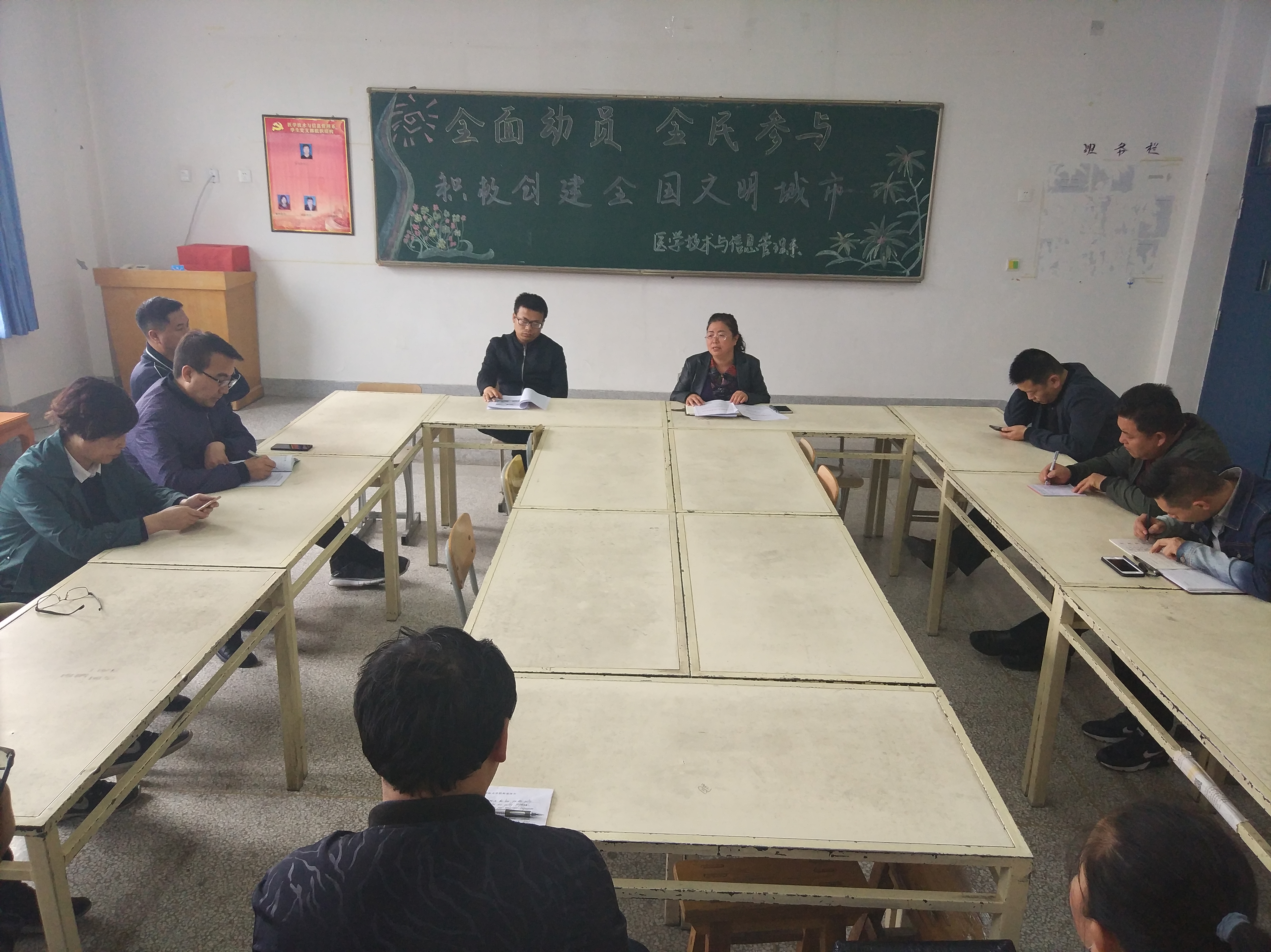 4月24日,醫(yī)學(xué)技術(shù)學(xué)院在明遠(yuǎn)樓416室召開創(chuàng)建全國文明城市動員大會,全系教師參加動員會,會議由楊如松同志主持。