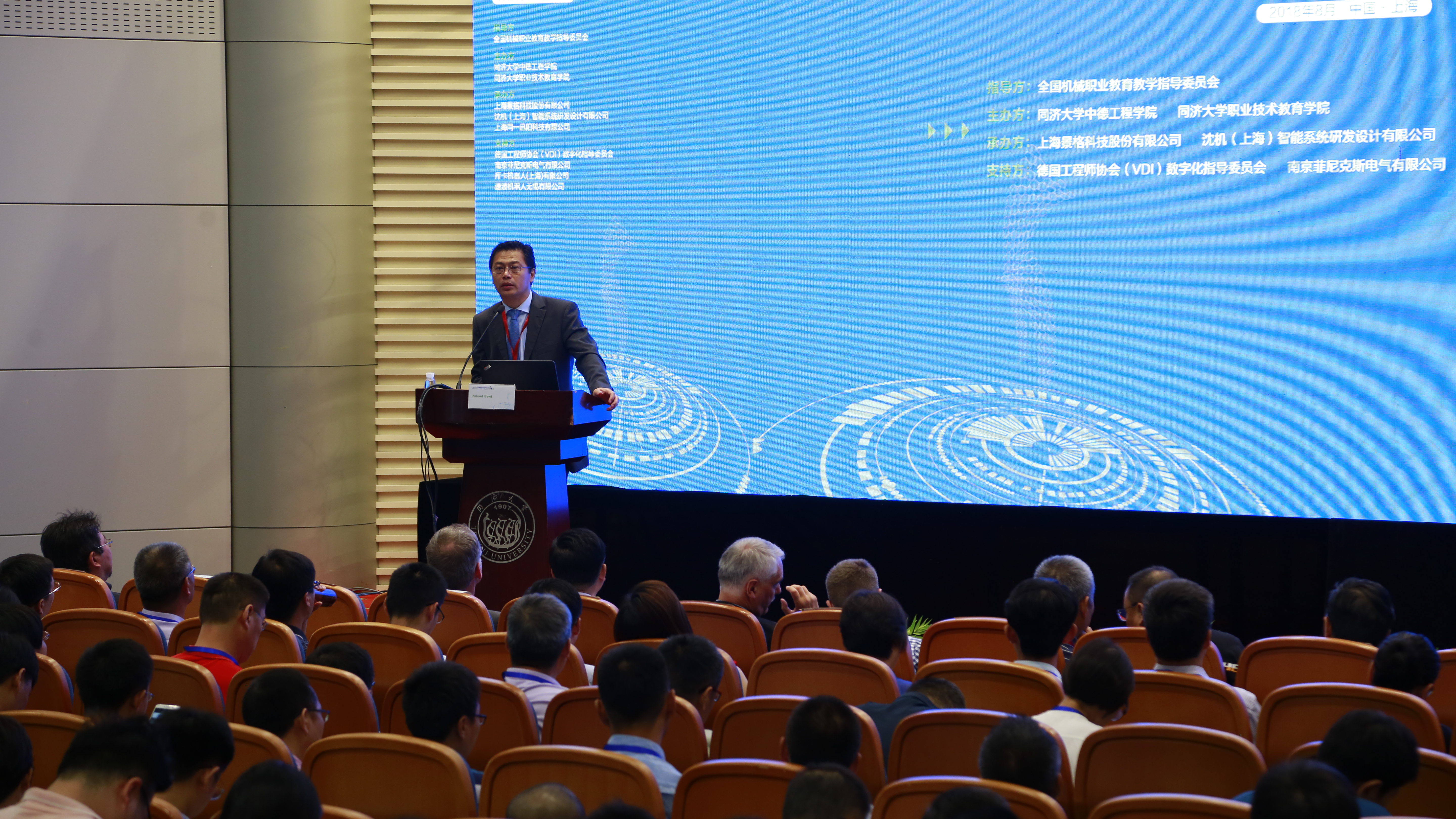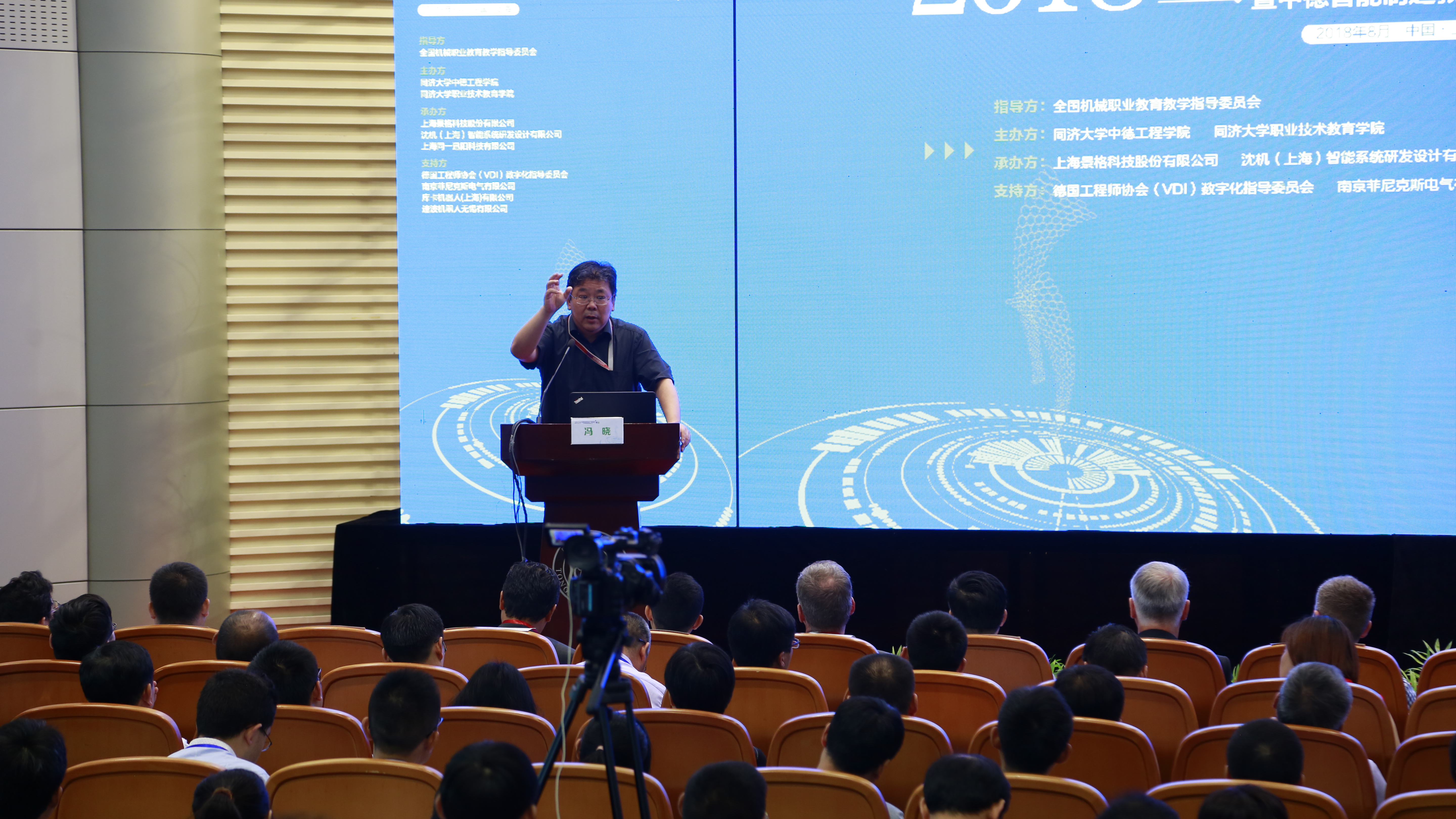 ??? 本屆論壇以全國機械職業(yè)教育教學指導委員會為指導單位,同濟大學中德工程學院和同濟大學職業(yè)技術教育學院聯(lián)合中德智能制造教育聯(lián)盟主辦,由上海景格科技股份有限公司、沈機(上海)智能系統(tǒng)研發(fā)設計有限公司、上海同一迅陽科技有限公司承辦。以及德國工程師協(xié)會(VDI)數(shù)字化指導委員會、南京菲尼克斯電氣有限公司、庫卡機器人(上海)有限公司、速波機器人無錫有限公司等企業(yè)為本次論壇提供了產(chǎn)教融合實踐之道的各項支持。本屆論壇得到國內(nèi)外200多所在智能制造相關專業(yè)領域優(yōu)秀的中高職、應用型本科院校的高度關注和積極響應,近300位校領導、職教專家、知名企業(yè)代表等齊聚一堂,共謀深化智能制造產(chǎn)教融合的創(chuàng)新之道。
