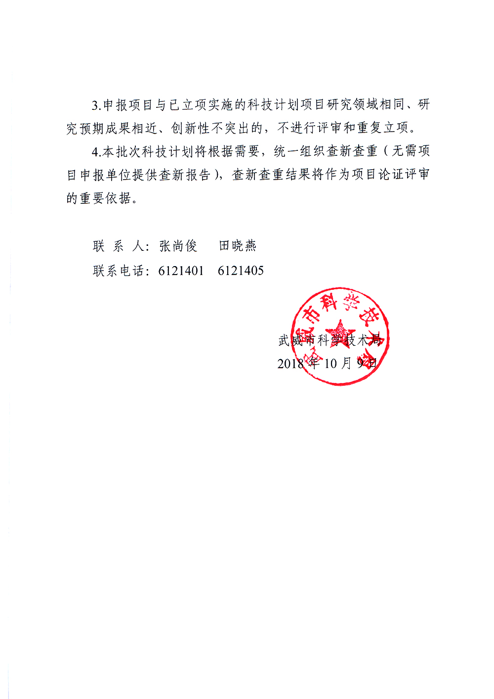 轉(zhuǎn)發(fā)武威市科學(xué)技術(shù)局關(guān)于組織申報2018年度第二批科技計劃項目的通知