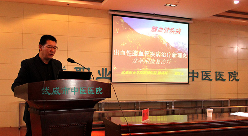 為提高醫(yī)務(wù)人員對(duì)于腦病(腦卒中)的診療和康復(fù)訓(xùn)練水平,推進(jìn)醫(yī)院腦卒中中心的籌備建設(shè),學(xué)院附屬醫(yī)院于11月11日上午,在內(nèi)科七樓會(huì)議室舉辦甘肅省中醫(yī)藥繼續(xù)醫(yī)學(xué)教育項(xiàng)目:腦病診療康復(fù)培訓(xùn)班。醫(yī)院副院長(zhǎng)宗武山主持培訓(xùn)班開班儀式,副院長(zhǎng)毛照海致辭歡迎蘭大二院2位神經(jīng)內(nèi)科專家講學(xué)指導(dǎo)工作。醫(yī)院各科室二百余名醫(yī)療骨干參加腦病診療康復(fù)培訓(xùn)班,聆聽學(xué)術(shù)報(bào)告。