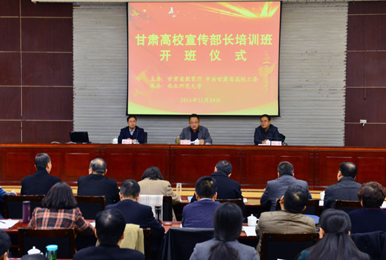 11月24日至25日,由甘肅省教育廳、甘肅省高校工委主辦,西北師范大學承辦的甘肅高校宣傳部長培訓班在西北師大舉辦。全省45所高校宣傳部(新聞中心)負責人參加培訓。我院宣傳統(tǒng)戰(zhàn)部部長王繼林參加培訓。