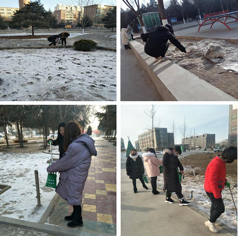 活動(dòng)期間,由系輔導(dǎo)員齊斌文老師和班主任帶領(lǐng)同學(xué)們準(zhǔn)備好工具準(zhǔn)時(shí)在各區(qū)域集合,對(duì)校園內(nèi)煙頭、垃圾進(jìn)行撿拾,為全院師生營造了良好的學(xué)習(xí)氛圍。