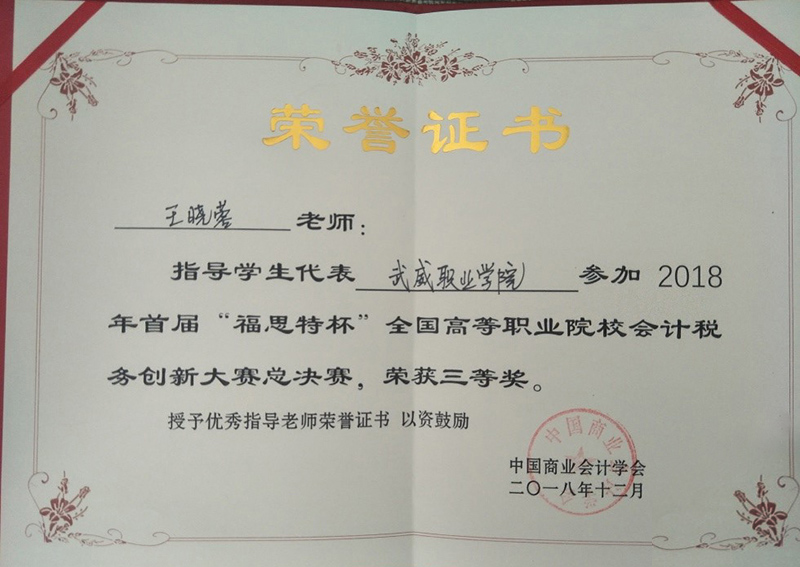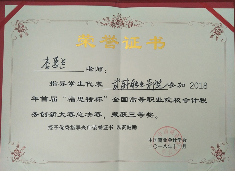 本次比賽得到學(xué)院領(lǐng)導(dǎo)、系領(lǐng)導(dǎo)的高度重視與大力支持。經(jīng)濟(jì)管理系專門成立了輔導(dǎo)小組,嚴(yán)格按照國賽要求進(jìn)行實戰(zhàn)訓(xùn)練。近年來,經(jīng)濟(jì)管理系參加各級各類會計技能競賽,適時修訂會計人才培養(yǎng)方案,提升學(xué)生動手實踐能力,培養(yǎng)學(xué)生的職業(yè)核心和專業(yè)崗位能力。做到技能競賽與教學(xué)改革、人才培養(yǎng)相輔相成、相得益彰,使學(xué)生團(tuán)隊合作能力、創(chuàng)新思維能力、職業(yè)能力不斷加強(qiáng),實現(xiàn)了“以賽促教、以賽促學(xué)、以賽促改”的預(yù)期效果。經(jīng)濟(jì)管理系將以此為契機(jī),不斷提高人才培養(yǎng)質(zhì)量,為學(xué)院優(yōu)質(zhì)院校建設(shè)增磚添瓦。