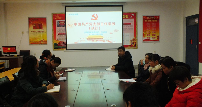 為進(jìn)一步加強(qiáng)黨支部標(biāo)準(zhǔn)化建設(shè), 12月27日,護(hù)理系黨總支在明遠(yuǎn)樓103黨員活動(dòng)室開展學(xué)習(xí)活動(dòng),護(hù)理系黨總支書記張建輝以《中國(guó)共產(chǎn)黨支部工作條例(試行)》為題,為參會(huì)黨員們進(jìn)行專題黨課輔導(dǎo),促進(jìn)全體黨員對(duì)黨建工作的認(rèn)識(shí)學(xué)習(xí)。