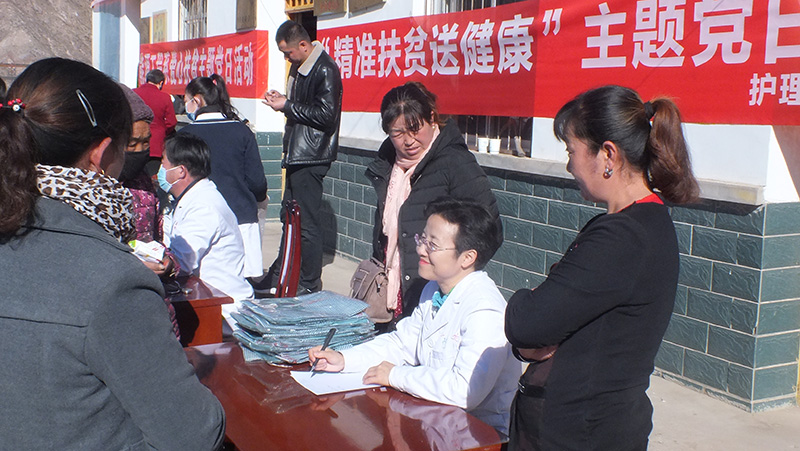 為深入學(xué)習(xí)宣傳貫徹黨的十九大精神及健康扶貧等惠民政策,減少出現(xiàn)“因病致貧”、“因病返貧”,11月23日,護(hù)理系黨總支組織黨員教師到我院精準(zhǔn)扶貧點(diǎn)古浪縣黑松驛鎮(zhèn)尚家臺(tái)村開展“健康扶貧,送醫(yī)送藥”主題黨日活動(dòng)。
