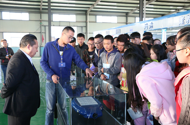 在榮寶照明,同學(xué)們了解了LED照明、LED路燈等太陽能能源開發(fā)及節(jié)能照明系列產(chǎn)品,參觀了LED封裝車間、路燈制造車間、涂裝車間、總裝車間;在航天萬源,工作人員帶領(lǐng)同學(xué)們參觀了風(fēng)力發(fā)電機的輪轂生產(chǎn)線、主軸生產(chǎn)線、電機生產(chǎn)線并介紹了風(fēng)力發(fā)電機的原理,風(fēng)力發(fā)電機各部件生產(chǎn)流程;在甘肅建投,同學(xué)們參觀了風(fēng)電設(shè)備、光伏產(chǎn)品、治沙設(shè)備的生產(chǎn)制造車間及相關(guān)工藝流程。