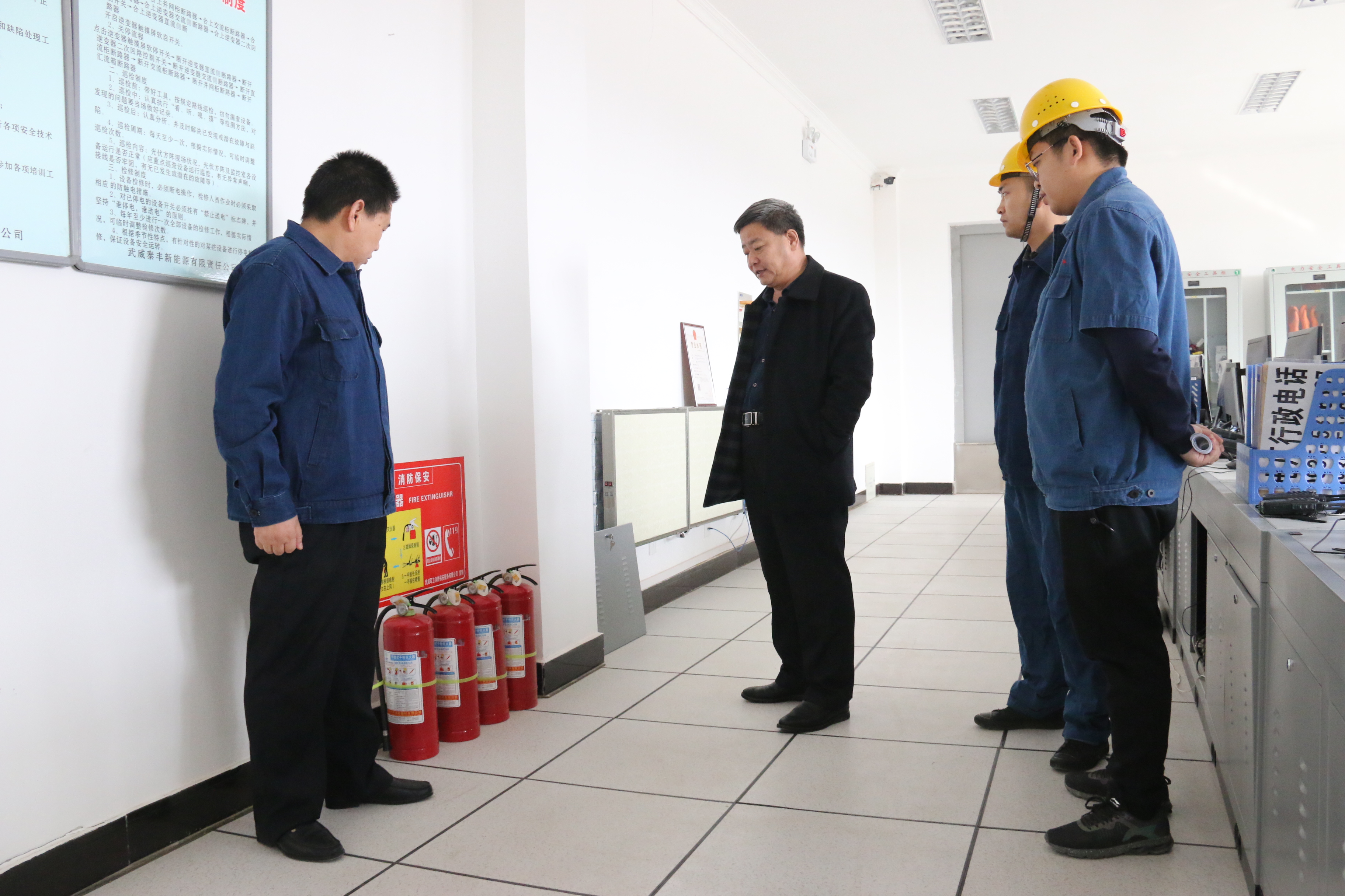 2019年2月25日,學(xué)院黨委書記、院長趙明、副院長翟存祥一行到校辦企業(yè)武威泰豐新能源有限責(zé)任公司古浪20兆瓦光伏扶貧電站檢查指導(dǎo)工作。趙明書記一行在公司負責(zé)人的陪同下深入電站中控室、光伏區(qū)、生活區(qū)等場地詳細了解了安全管理、電站運營和工作人員生活保障等情況,隨后進行了座談交流。