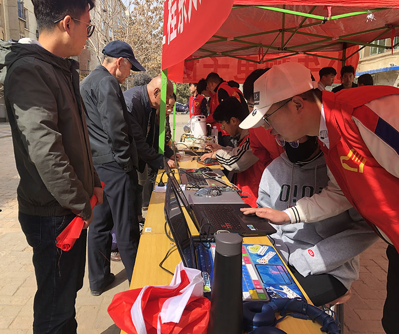 3月23日上午,我系小牛頓電子協(xié)會和計算機協(xié)會的志愿者們,來到泰安小區(qū)開展了以“發(fā)揚雷鋒精神,科技服務(wù)進(jìn)社區(qū)”為主題的家電、電腦義務(wù)維修活動。志愿者們對小區(qū)居民送來的電水壺、電飯煲、微波爐、影碟機等家電進(jìn)行了維修,受到了小區(qū)居民的歡迎。志愿者們還不辭辛苦,上門對有故障的電腦進(jìn)行重裝系統(tǒng)、更新驅(qū)動等服務(wù),師生們認(rèn)真負(fù)責(zé)、一絲不茍的精神得到了居民們的贊許。