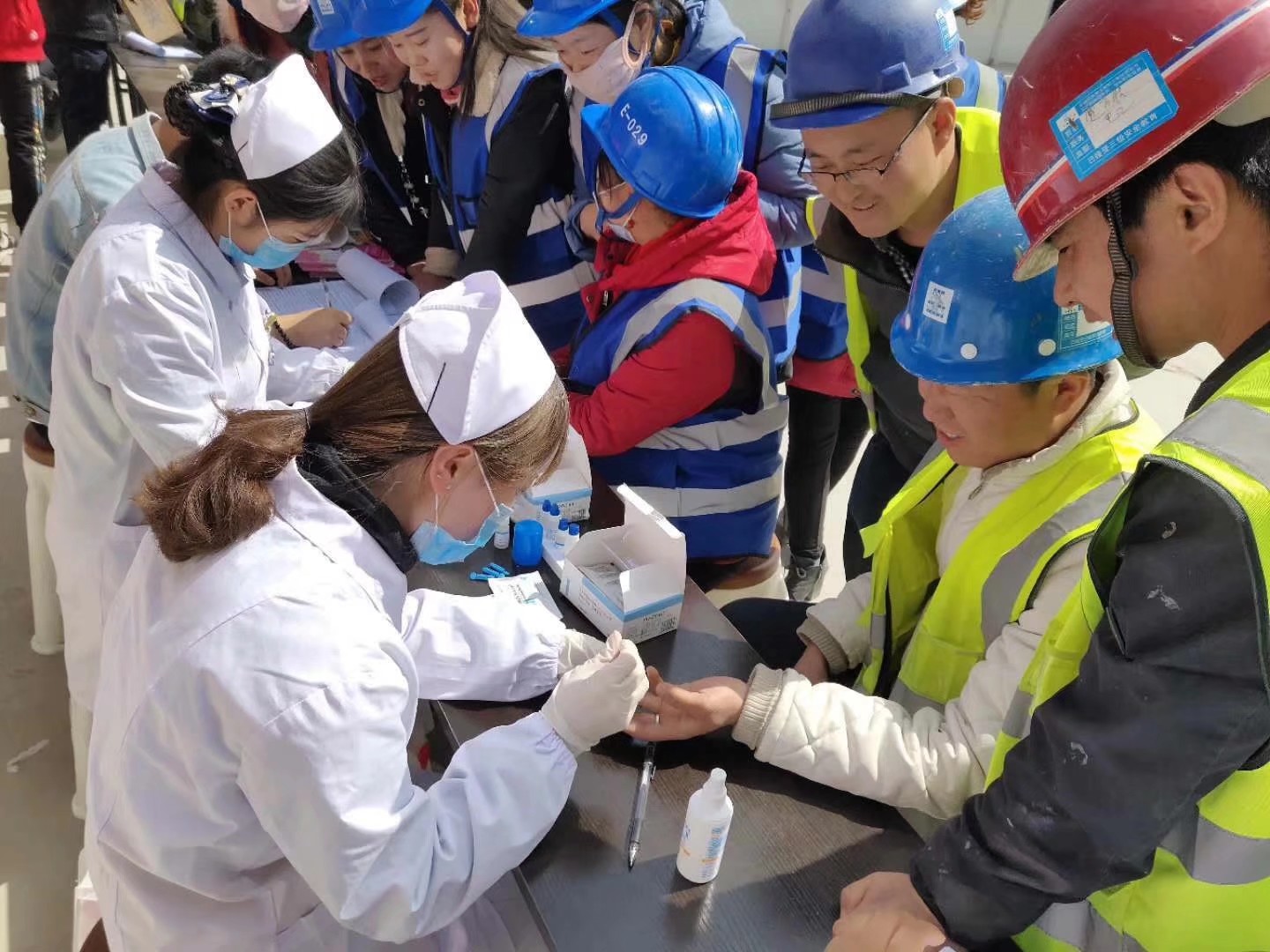 ? ? 到達(dá)活動(dòng)現(xiàn)場(chǎng)后,疾控中心工作人員和志愿者們?cè)诼櫪蠋熀蜅罱艿陌才畔拢凑疹A(yù)定方案迅速進(jìn)入到工作狀態(tài) ,為工作在那里的300多名農(nóng)民工人測(cè)量血壓、檢查視力、檢測(cè)丙肝和艾滋病病毒;宣傳健康知識(shí)并贈(zèng)送春季常見傳染疾病及艾滋病病毒預(yù)防宣傳手冊(cè);活動(dòng)結(jié)束時(shí),還為中建四局的農(nóng)民工人發(fā)放了活動(dòng)紀(jì)念品。