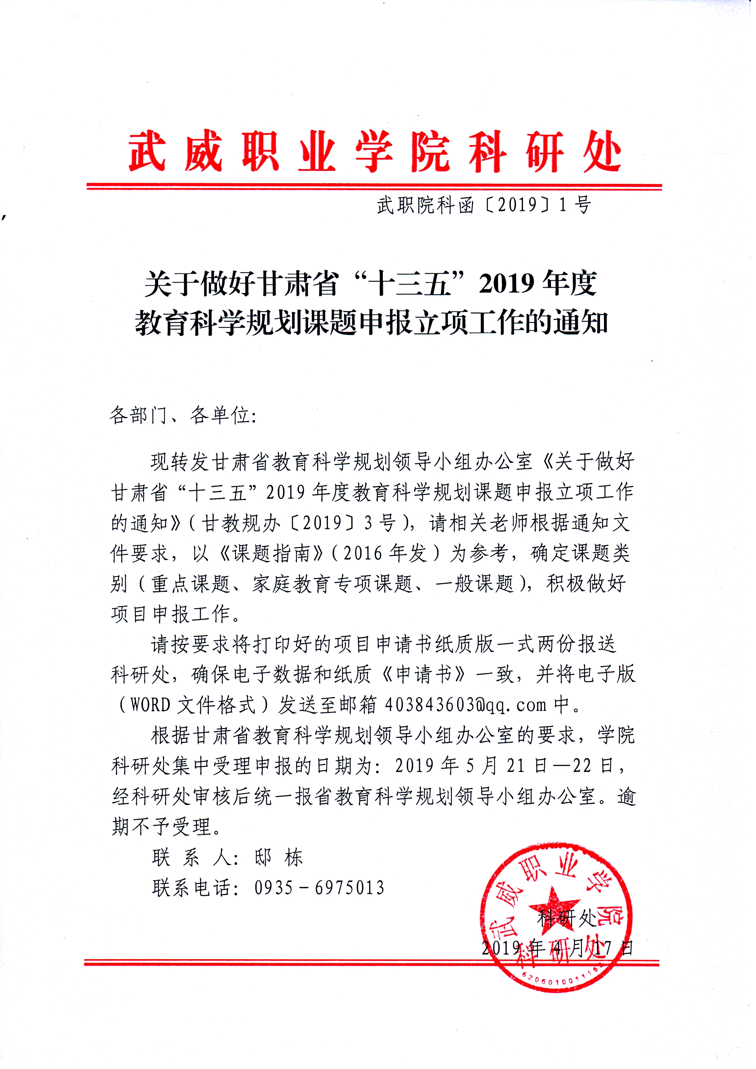 關(guān)于做好甘肅省“十三五”2019年度教育科學規(guī)劃課題申報立項工作的通知