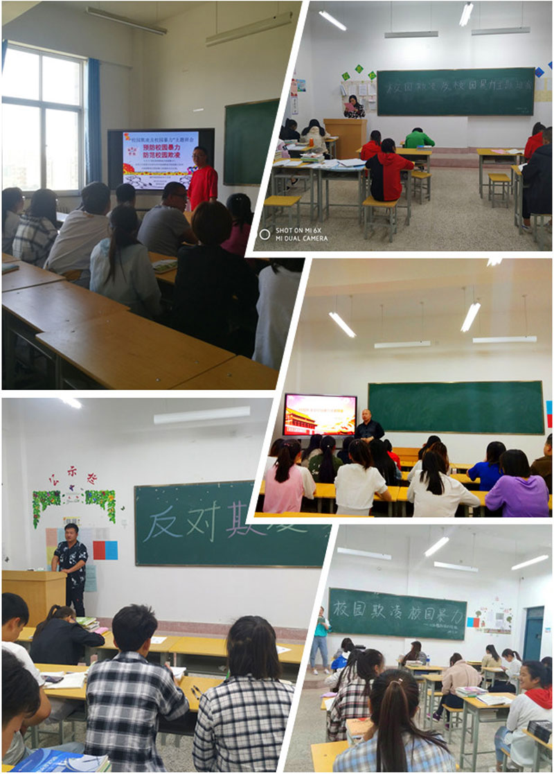 5月23日系輔導(dǎo)員蔡海老師組織學(xué)生觀看電影《七個女孩的懺悔》;學(xué)習(xí)關(guān)于校園欺凌與校暴力事件的典型案例,普及法律知識,增強學(xué)生安全防范意識;同時各班認真召開校園欺凌和校園暴力事件主題班會。