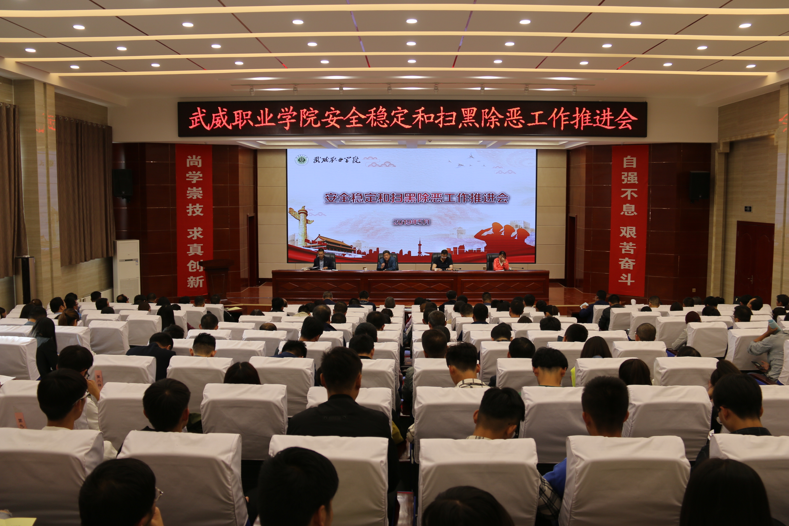5月27日下午,學(xué)院安全穩(wěn)定和掃黑除惡工作推進(jìn)會在大學(xué)生活動中心菁英廳召開,黨委書記、院長趙明、紀(jì)委書記張富國、副院長王永緒、田迎春出席會議,各部門、單位負(fù)責(zé)人、安全信息員、各院系輔導(dǎo)員、班主任、團(tuán)學(xué)干部參加了會議。會議由趙明主持。