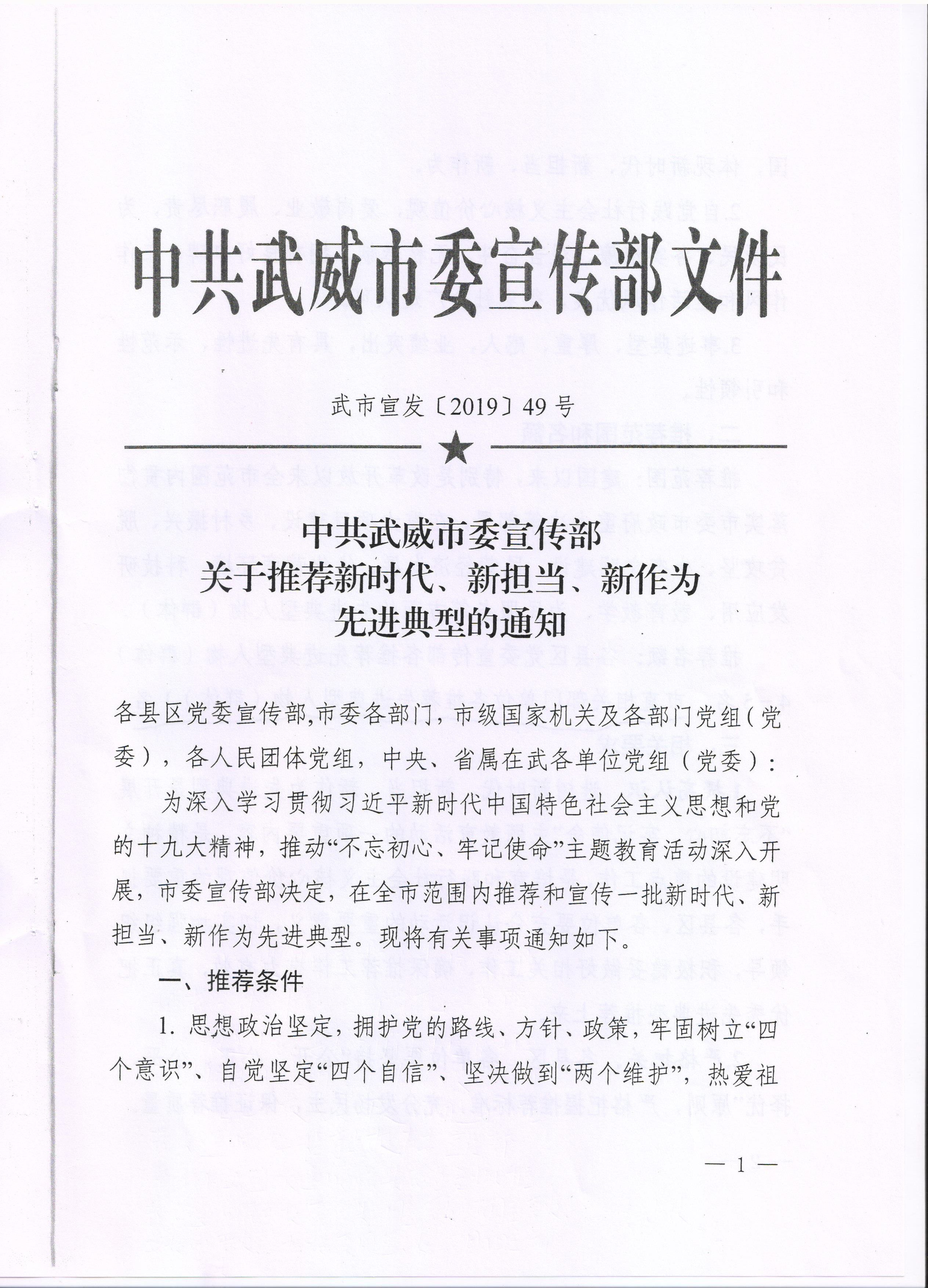 附件:《中共武威市委宣傳部關(guān)于推薦新時(shí)代、新?lián)?dāng)、新作為先進(jìn)典型的通知》