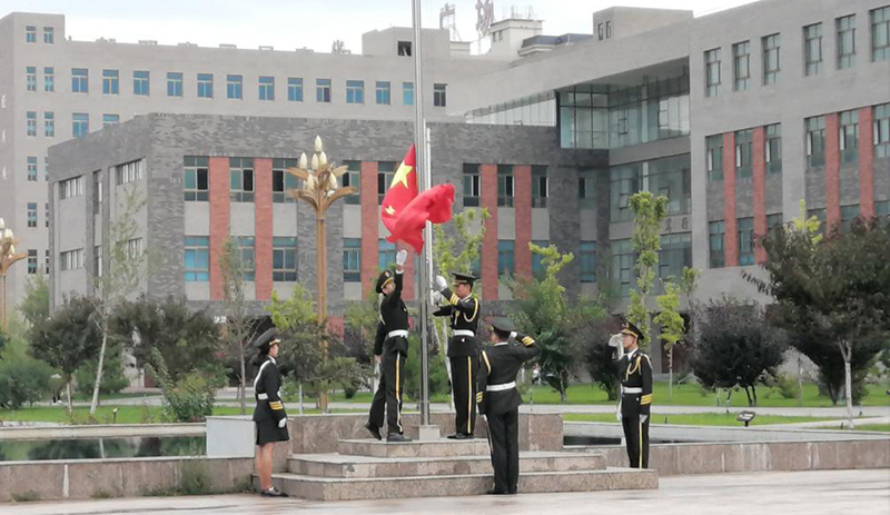 2019年8月26日,人文藝術(shù)教育系全體師生在學(xué)院圖書館東廣場(chǎng)舉行升國(guó)旗儀式。7點(diǎn)20分,伴隨著雄壯的國(guó)歌聲和護(hù)旗手鏗鏘有力的步伐,升旗儀式正式開始。