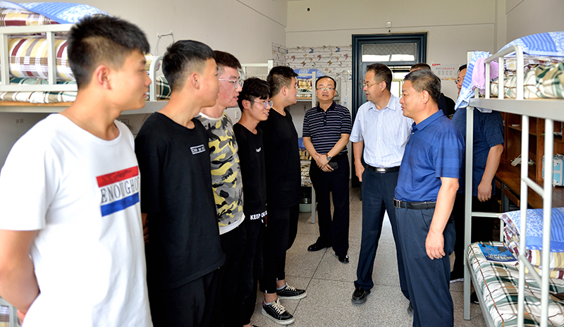 9月1日,是學院2019級新生報到的第二天。當天下午,學院黨委書記、院長趙明,黨委副書記翟存祥,紀委書記張富國,副院長張開禮、王守云來到新生報到現(xiàn)場,實地巡視檢查新生報到情況,學院迎新工作領(lǐng)導小組成員單位負責人參加巡視。趙明同志一行先后到2019級新生報到現(xiàn)場、學生公寓、學生食堂等地,與2019級新生、家長熱情交流,了解新生報到注冊情況,勉勵新同學盡快融入學院,適應(yīng)大學生活。來自甘谷職業(yè)技術(shù)學校的新生家長說:“我來之前還對學校不是很了解,到學校后,戴著工作牌的志愿服務(wù)學生非常主動熱情,我問什么都跟我說。學校的環(huán)境優(yōu)美,住宿條件很好,飯菜物美價廉??吹綄W校的領(lǐng)導和老師對孩子的關(guān)心關(guān)愛,我就放心多了?!?/p>