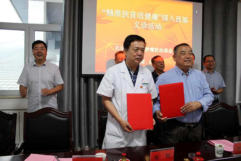 陳鋼與閻桐共同簽訂捐贈(zèng)10萬(wàn)元腫瘤防治基金協(xié)議。該基金用于資助武威貧困腫瘤患者康復(fù)治療使用。
