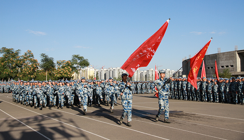 在軍訓(xùn)總結(jié)大會上,學(xué)院紀(jì)委書記張富國同志宣布了2019級新生軍訓(xùn)工作先進集體、先進個人、軍訓(xùn)標(biāo)兵名單。學(xué)院領(lǐng)導(dǎo)為軍訓(xùn)工作先進集體、先進個人、軍訓(xùn)標(biāo)兵代表頒獎。學(xué)院黨委書記、院長、軍訓(xùn)團政委趙明同志代表學(xué)院向關(guān)心這次軍訓(xùn)的中國人民解放軍某部軍訓(xùn)隊致以崇高的敬意,向14天來辛勤奮戰(zhàn)在訓(xùn)練一線的55位教官表示衷心的感謝,并贈送錦旗。向堅守在訓(xùn)練現(xiàn)場的各系輔導(dǎo)員、班主任致以誠摯的問候,向不怕吃苦、頑強拼搏、圓滿完成軍訓(xùn)任務(wù)的同學(xué)們表示熱烈的祝賀!