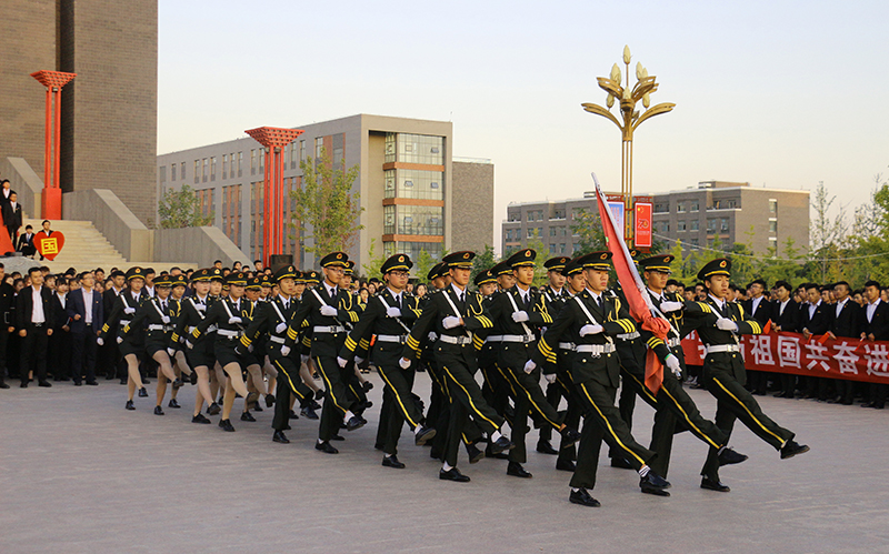 首先,舉行升國旗儀式。英姿颯爽的國旗護(hù)衛(wèi)隊(duì)踏著矯健的步伐護(hù)送國旗抵達(dá)升旗臺(tái),鮮艷的五星紅旗在雄壯的國歌聲中冉冉升起,全場師生齊唱中華人民共和國國歌,飄揚(yáng)的國旗、嘹亮的國歌,激蕩起每個(gè)人強(qiáng)烈的愛國熱情。升旗儀式結(jié)束后,全體師生揮動(dòng)手中的五星紅旗齊唱《歌唱祖國》,用歌聲共同祝福偉大的祖國繁榮富強(qiáng)。院團(tuán)委馬琪老師帶領(lǐng)全體團(tuán)員面向鮮紅的團(tuán)旗重溫入團(tuán)誓詞,激發(fā)共青團(tuán)員的光榮感和使命感。