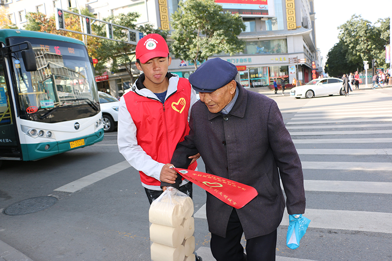 19日早上11點,正值城市交通的高峰時段,身穿志愿者服裝,手持“爭當文明市民、爭創(chuàng)文明城市”交通指揮旗的志愿者們站在大十字和北關十字執(zhí)勤位點上,認真履行文明交通志愿者職責,協(xié)助交警耐心地引導過往行人和非機動車輛遵守交通規(guī)則。當看到闖紅燈、等紅燈壓線等不文明交通行為時,志愿者們會上前進行禮貌地勸導;當遇到行動不方便的老年人過馬路時,志愿者們會熱心地幫助老人安全通過馬路,在志愿者們的示范引領下,十字路口的交通秩序顯著好轉。