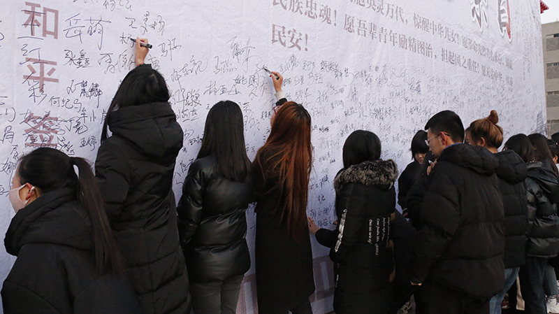 活動(dòng)最后,參會(huì)師生在紀(jì)念背景墻上簽名,共同祈愿: