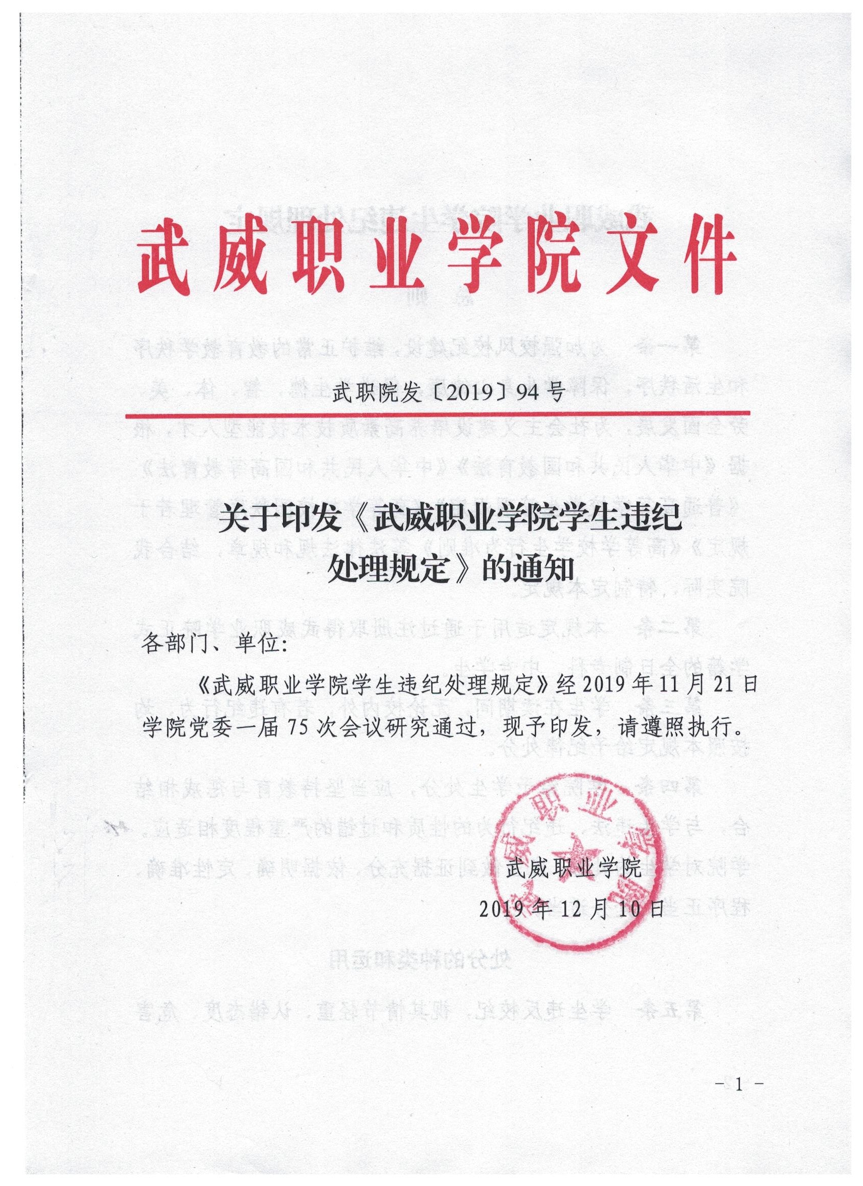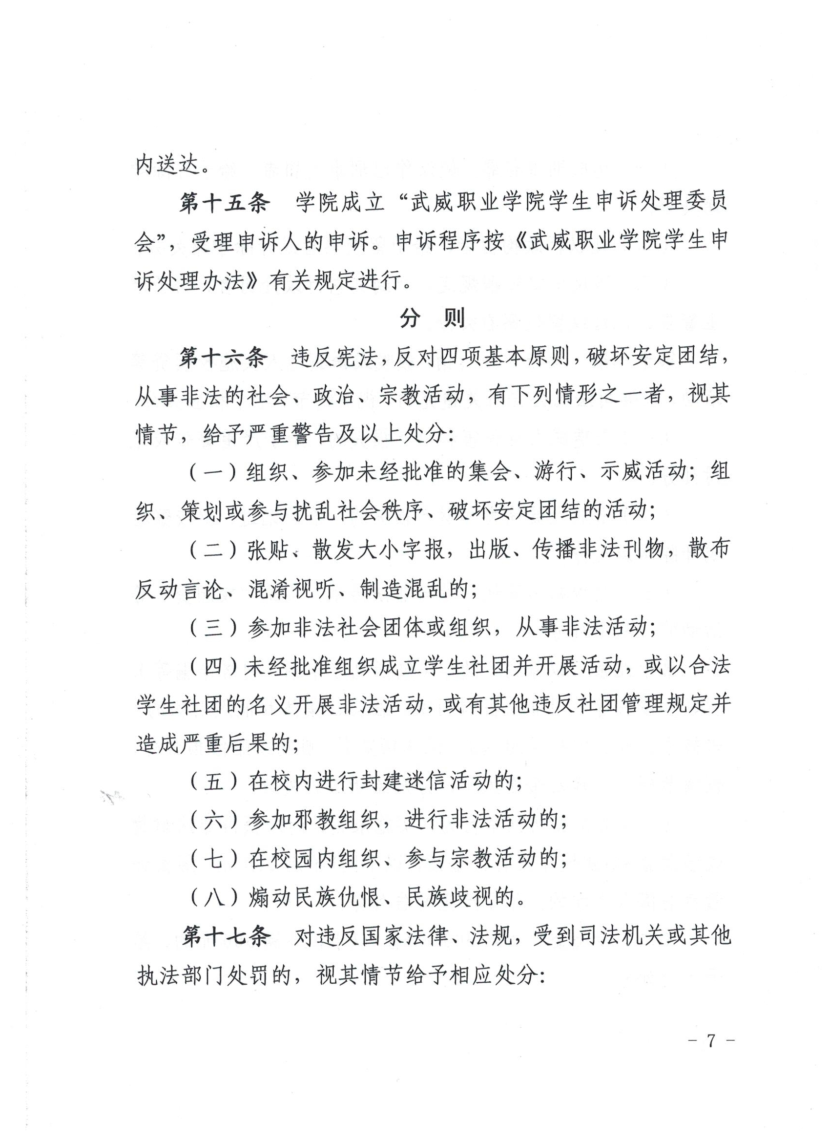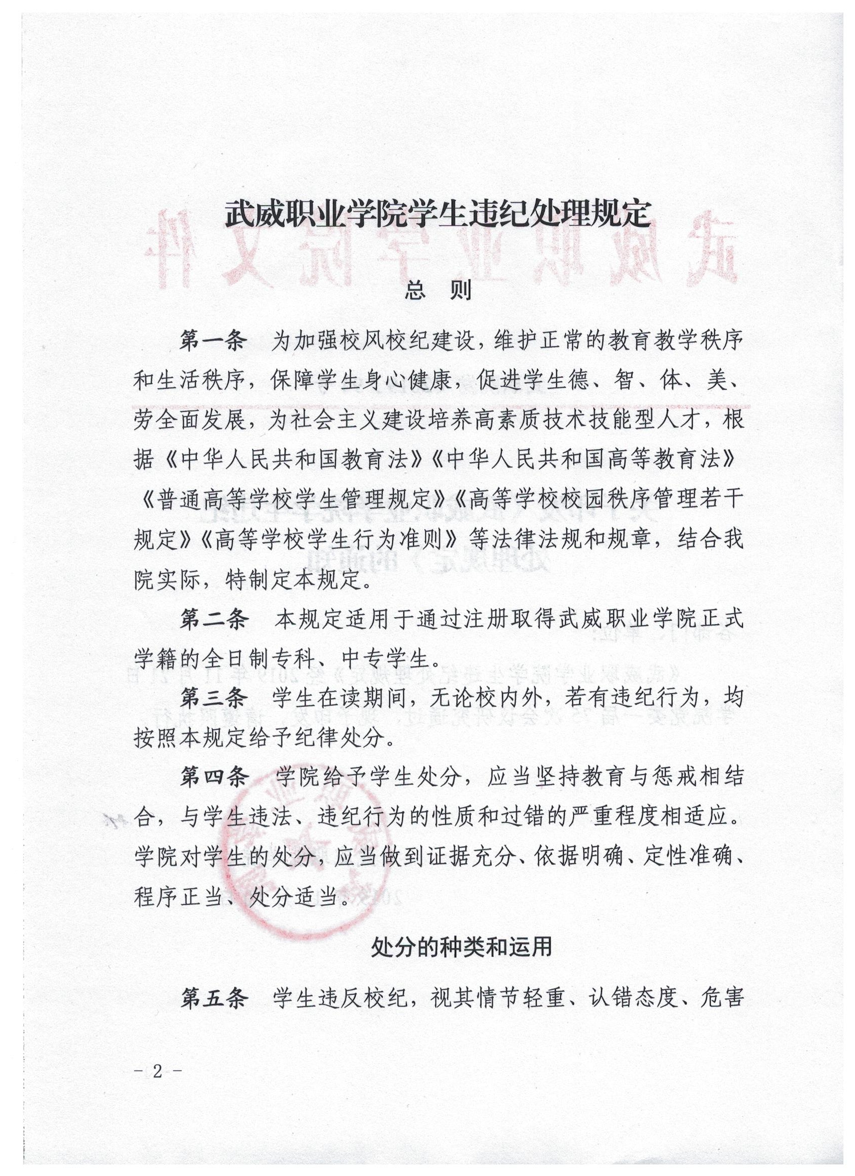 武威職業(yè)學院學生違紀處理規(guī)定