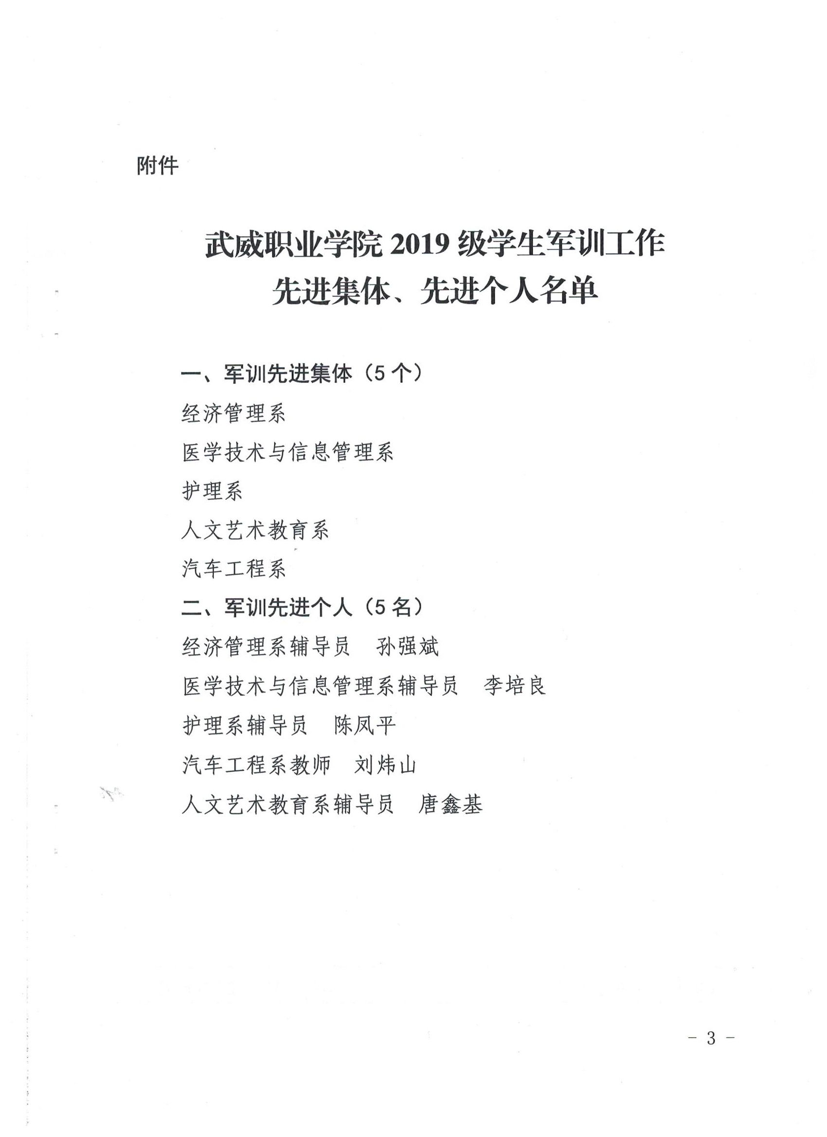武威職業(yè)學(xué)院關(guān)于表彰2019級學(xué)生軍訓(xùn)工作先進(jìn)集體、先進(jìn)個(gè)人的決定