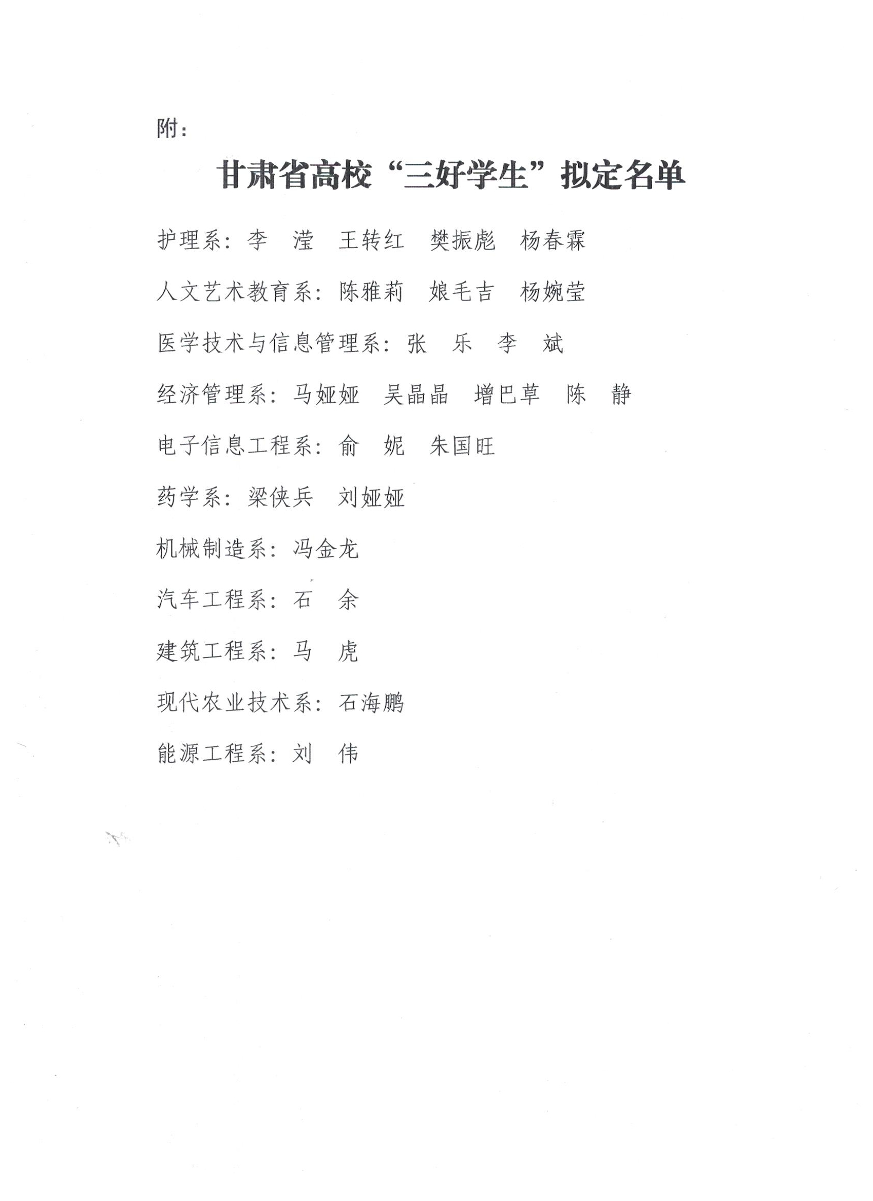 甘肅省高?!叭脤W生”擬定人員的公示