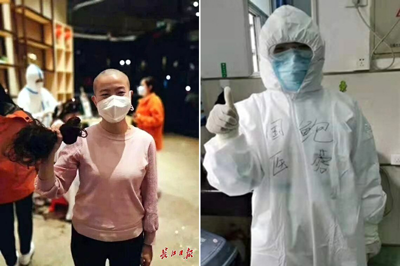 鮑蓉:抗疫阻擊號(hào)令起,斬青絲,立壯志。