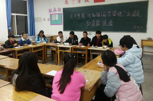通過組織各班團干部開展 “我與祖國共奮進”主題座談會,讓團干部們對歷史有了深刻的了解,也讓同學們在這次座談會中深刻領悟到身為中華兒女要勿忘恥辱,為實現中華民族偉大復興的中國夢而勤奮學習。同時,各班團支部以形式多樣的主題團會,表達出為了實現“中國夢”,讓屈辱的歷史不再重演,將要萬分珍惜今天這來之不易的和平生活,努力學習,不斷進取。