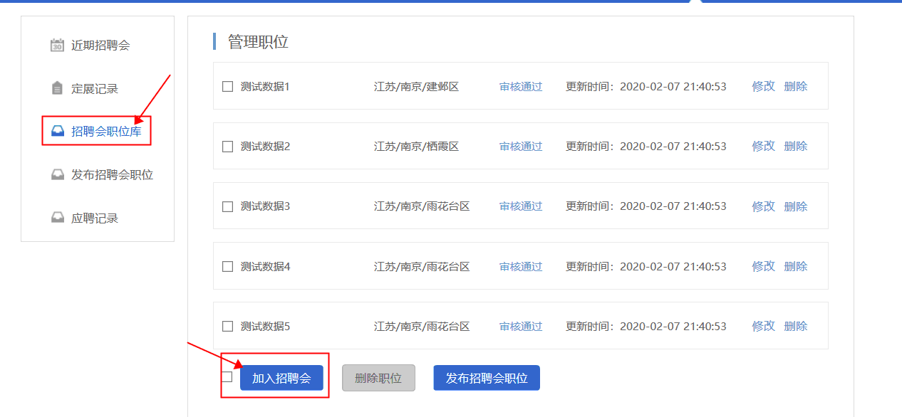 2.在企業(yè)會(huì)員中心——網(wǎng)絡(luò)招聘會(huì)——定展記錄頁(yè)面,選擇需要發(fā)布職位的招聘會(huì),點(diǎn)擊發(fā)布職位按鈕,選擇參會(huì)職位點(diǎn)擊發(fā)布參展職位按鈕,職位將在網(wǎng)絡(luò)招聘大廳中進(jìn)行展示。