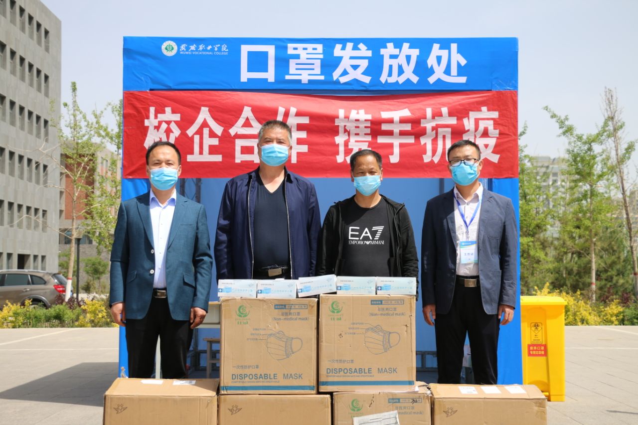 5月14日,學(xué)生返校報(bào)到第一天,武威華瑞服裝公司向?qū)W院捐贈(zèng)一次性防護(hù)口罩10000個(gè),遮陽棚20頂,助力學(xué)生返校報(bào)到工作。簡(jiǎn)短的捐贈(zèng)儀式在報(bào)到現(xiàn)場(chǎng)舉行,副院長(zhǎng)王守云,學(xué)工處、保衛(wèi)處負(fù)責(zé)人代表學(xué)院接收捐贈(zèng)物資。