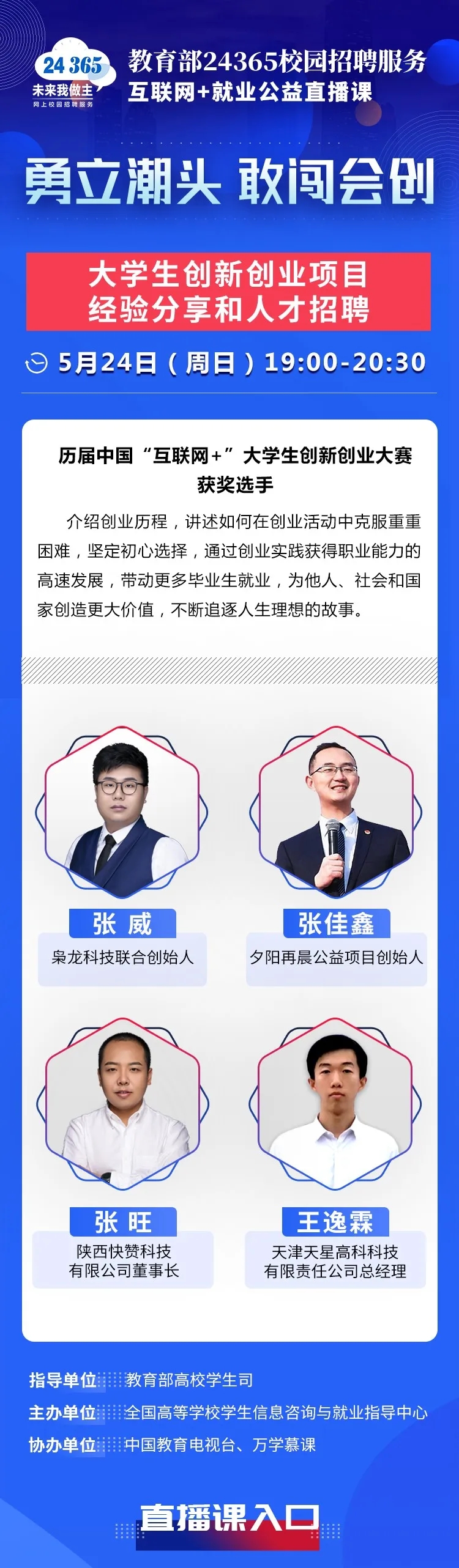 教育部24365就業(yè)公益課程:勇立潮頭 敢闖會創(chuàng)——大學生創(chuàng)新創(chuàng)業(yè)項目經(jīng)驗分享和人才招聘