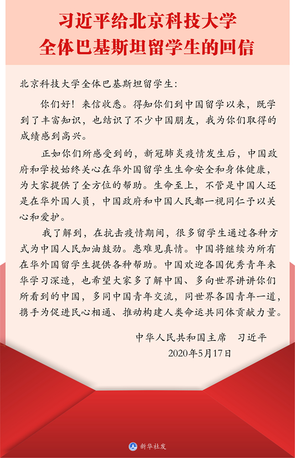 專題會后,國際合作與交流處工作人員組織留學(xué)生召開學(xué)習(xí)貫徹習(xí)近平總書記給北京科技大學(xué)全體巴基斯坦留學(xué)生回信精神專題視頻座談會。會議要求,全體留學(xué)生要認(rèn)真學(xué)習(xí)回信,要深刻領(lǐng)會回信的重大意義,要深刻領(lǐng)會回信的真情實感。留學(xué)生們一致對學(xué)院在新冠肺炎疫情暴發(fā)后給予的關(guān)心表示感謝,表示學(xué)有所成后要投身“一帶一路”建設(shè)、為增進中外友誼做出貢獻。