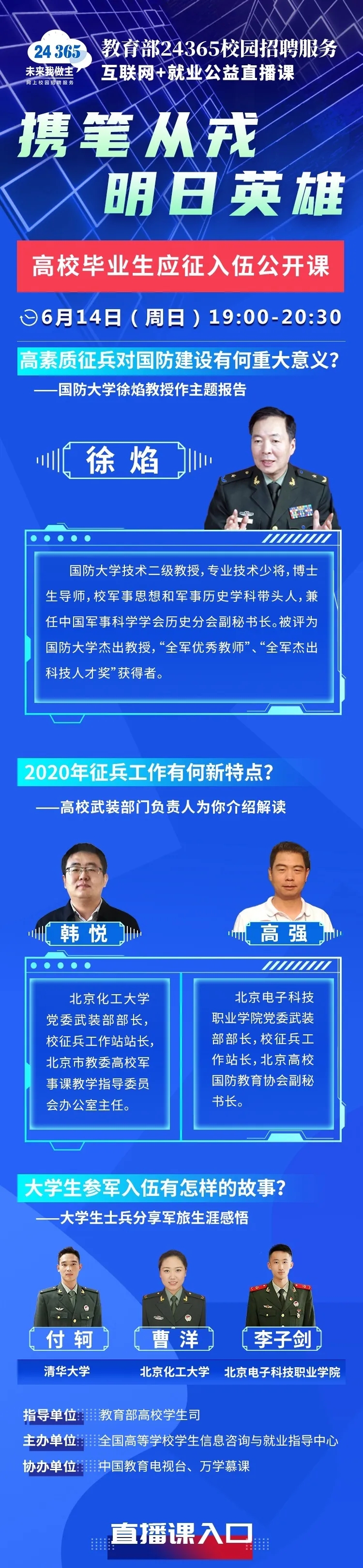 教育部24365就業(yè)公益課程:攜筆從戎 明日英雄——高校畢業(yè)生應(yīng)征入伍公開(kāi)課